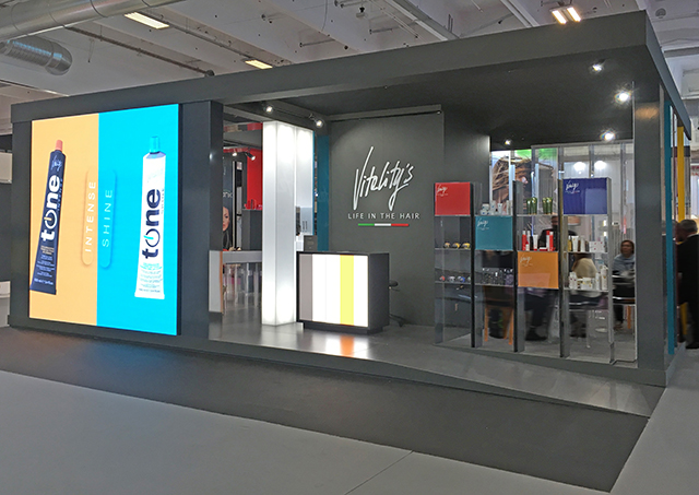 Stand espositivo di prodotti per la cura dei capelli del Brand Vitality's